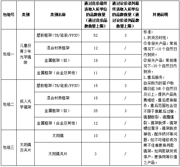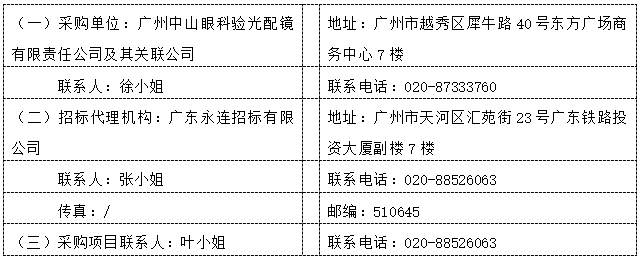 投标项目名称:广州中山眼科验光配镜有限责任公司及其关联公司2026年度销售产品集中建库项目(眼镜架类)