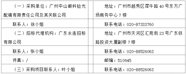 采购项目名称:广州中山眼科验光配镜有限责任公司及其关联公司2026年度销售产品集中建库项目(功能性视光产品类)